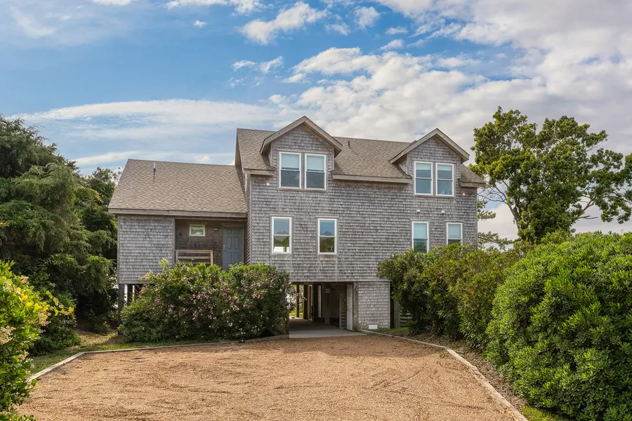 BEAUTIFUL SOUNDFRONT IN SANDERLING WITH AN ELEVATOR! NEW DECK, NEW ROOF! ENDLESS SUNSETS!! This is the perfect opportunity to own waterfront property in the coveted town of Duck, located on the beautiful Outer Banks! 1472 Duck Road is a charming 2,026 square foot, two floor Cape Cod style home located on the scenic Currituck Sound shoreline just minutes north of terrific restaurants and shopping, and roughly half-a-mile from the beaches of the Atlantic Ocean. Featuring four bedrooms and five bathrooms, the delightful home allows owners and guests to enjoy the wonders of coastal living. On the first floor the openness of the kitchen, dining room and living area invite a relaxed ambiance that emanates throughout the thoughtfully designed home. Highlighted by a high, vaulted ceiling and cozy fireplace the living room invites homeowners and guests to relax while taking in the splendor of the sound front either through large windows, or in the outdoors on the sizable attached deck. Either way there is plenty of room to stretch your legs or entertain groups of family and friends. A full-size bathroom plus washer and dryer, and a large bedroom with a full ensuite bathroom conveniently lie just off the living area. Down a short hallway the master bedroom is an oasis all its own offering a spacious retreat to unwind and rejuvenate. With large sliding glass doors that open to the deck you can relax as you soak up the serene views of nature that surround. The ensuite master bathroom offers plenty of room, cabinet space and a lovely walk-in shower. Upstairs on the second floor two additional bedrooms and full ensuite bathrooms provide plenty of room for guests to decompress and enjoy privacy away from the living area. Additionally, a deep owner’s closet in the hallway offers you ample, secure storage for any valuables you want to keep tucked away out of sight. Underneath the elevated home you’ll find access to a dock extending out over the waters of the sound where you can take in famous Outer Banks sunsets, fish, canoe or launch other outdoor activities. What’s more, underneath the home you’ll find lots of added storage space plus a convenient outdoor shower. 1472 Duck Road is a unique opportunity to own a home that combines comfort and the captivating beauty of coastal lifestyle in a highly valued Outer Banks location!