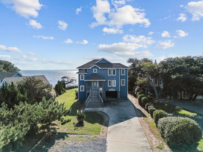 Stunning sunset views on the sound in Duck! Experience coastal living at its finest in this remarkable soundfront home boasting 6 bedrooms, 5 1/2 baths, a private pool and breathtaking sunsets. This property is an absolute gem featuring five(of 6) bedrooms with private walkout to your deck overlooking the water. Top floor has an open living space with vaulted ceilings, bamboo flooring, a gas fireplace and panoramic soundviews. Fresh interior and exterior paint, a new roof, new water heater and a game room with kitchenette are just a few of the perks of this home. Launch your kayak or paddle board right behind your house or take a short walk to the Northpoint private community beach access! Dive into the private pool, unwind in the brand new hot tub and savor the stunning views from your 75 feet of waterfront on the Currituck Sound. This oasis is perfectly located just 1 mile from the cha...
