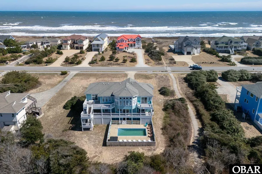 Welcome to this luxurious 7-bedroom, 7 1/2-bathroom beach house, where comfort meets elegance. Beach access is across the street with pedestrian crosswalk access. This property offers incredible ocean views from the front and views of Chicahauk open space from the back.The home boasts high-quality furnishings and beautifully curated beachy decor that brings the tranquility of the ocean inside. The spacious, open floor plan seamlessly connects living, dining, and kitchen areas, making it perfect for both relaxation and entertaining. The gourmet kitchen is a chefs dream, featuring stunning granite countertops and top-of-the-line stainless steel appliances.Enjoy ultimate relaxation in the private pool and hot tub, or take the elevator to your favorite floor for easy access to all the amenities. Entertain in style with a spacious game room featuring a pool table, perfect for fun-filled evenings.Conveniently located near the charming towns of Duck and Kitty Hawk, this home is just minutes away from top restaurants and shopping. Whether you're seeking a peaceful retreat or a place to entertain family and friends, this exceptional home offers everything you need for an unforgettable beach lifestyle.Updates include: 2024 -Pool resurfacing; 2023- entire interior painted, some exterior paint, refrigerator, front door, 4 bedrooms were refurnished, new outdoor furniture; 2022 - new fence, added turf in pool area, new hot tub; 2021 - HVAC; 2020 - washer and dryer, kitchen appliances, living room furniture; 2019 - hot water heaters