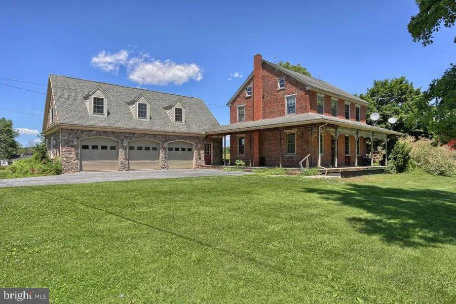 Are you looking for your future homestead with views of pastures, peaceful meadows and a meandering creek? This solid brick, 4-bedroom farmhouse with a wrap-around porch should satisfy that need. Much has been done here with 3-piece crown molding w/tray ceiling the dining room and 2-piece crown molding w/tray ceiling in the living room and a remodeled 3rd level suite, including a 4th bedroom, loft & bath. Almost all rooms have been redone at some point with updated electric. Some still needs to be done, however, so you can add your finishing touches. This quiet, beautiful, potential-filled, 4.1-acre parcel in Lower Dauphin School District is being offered as-is to the person who desires some country living. Bonuses include 9-foot ceilings on the first level, original wainscoting in dining room, remodeled, extra living quarters on the 2nd level of the stone, 3-bay, 6-dormer garage, summer...
