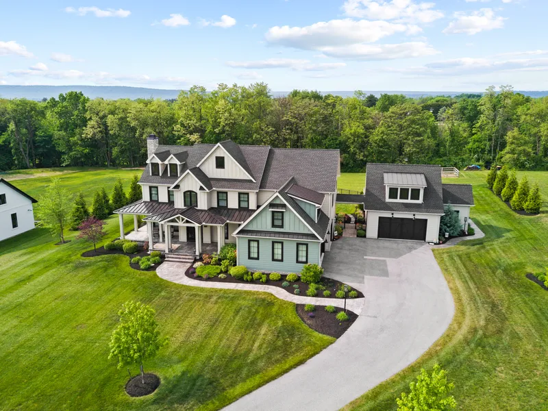 Standing on two acres is this stunning five-bedroom, 4,900 square foot home with a three-car garage, plus the added bonus of a separate 800 square foot, two-bedroom guest house with a two-car garage. Custom built by Harrisburg-based FoxBuilt in 2019, the property is magnificent inside and out with an in-ground pool, spacious back patio, fire pit, covered front porch, and beautiful landscaping. Skillfully crafted, you’ll appreciate every high-quality detail, including gorgeous hardwood floors, wainscoting, brick accents, ship lap, and exposed beams, all giving this exquisite property a warm, modern farmhouse feel. The first floor of the main house includes a gourmet kitchen/dining area that provides a high-end professional six-burner gas range with griddle, two dishwashers, huge breakfast island with seating, and a fantastic walk-in pantry. A convenient butler’s pantry joins the kitchen a...