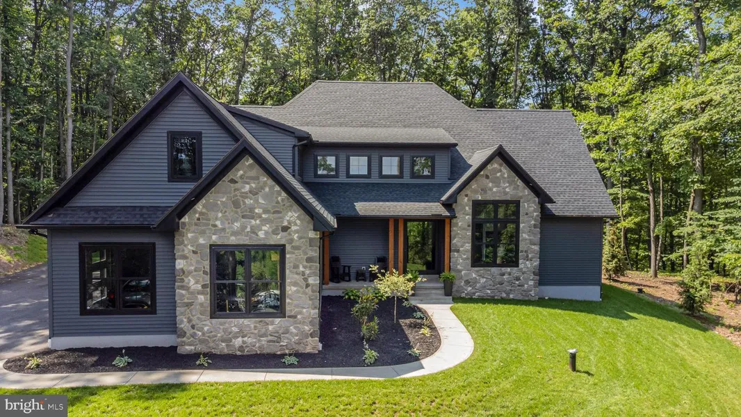 Atop the world in this stunning Derry Twp contemporary built in 2022, surrounded by 2.7 acres of private woods, unmatched valley views into the surrounding farmlands. This beautifully designed and constructed 3,000+ square foot S. Gerald Musser Builder floor plan brags with leathered granite kitchen counters, 6 burner hooded gas stove, full pantry/appliance garage with pull out appliance drawers with hidden rear mounted electrical outlets, 10' ceilings throughout the first floor, beamed Kitchen and Living Room, each bedroom enjoying it's own private full bath. Enjoy relaxing on the private and secluded covered back patio overlooking acres of mature forest, or sip your favorite coffee in the office while enjoying one of many indescribable sunrises this hilltop location provides. From a technical viewpoint, stay warm and cozy with the highly efficient Geothermal heat/cool system, no waiting for your hot water, the hot water circulation system provides immediate temperate water for every sink and shower, electrical system is pre-wired for a portable generator back-up supply, driveway is pre-wired for gate installation, oversized 33x22 garage leaves space for everyone's doors to open, oversized commercial grade residential ceiling fans manufactured by BAF (Big Ass Fans). Many more design features and upgrades to discover in this gorgeous property.