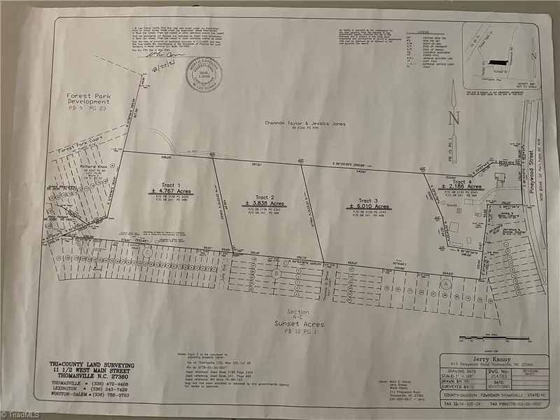 Over 8 1/2 acres in beautiful Thomasville. Come check out this great land today. This property contains all of 0 Julia and a portion of 413 Pineywood 3.838 acres(6777-01-19-5949) See attached survey, tracts one and two convey. The tax value represents 0 Julia, we are currently working with the tax office to get updated information. The sellers states there is a natural stream on tract 2 with a small shed over it. There are 2 encroachments on the property one is a neighbors shed and another is a propane/gas tank. The city of Thomasville has a sewer easement on the corner of tract one. Access to both tracts are at the end of Julia, the flags from the survey are still there. Please schedule all showings per Showingtime