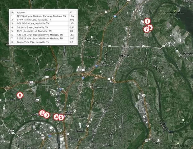 1.53 & 2.68 acres of industrial land, zoned IR, with close proximity to 1-65 and Old Hickory Blvd in the Rivergate Mall area