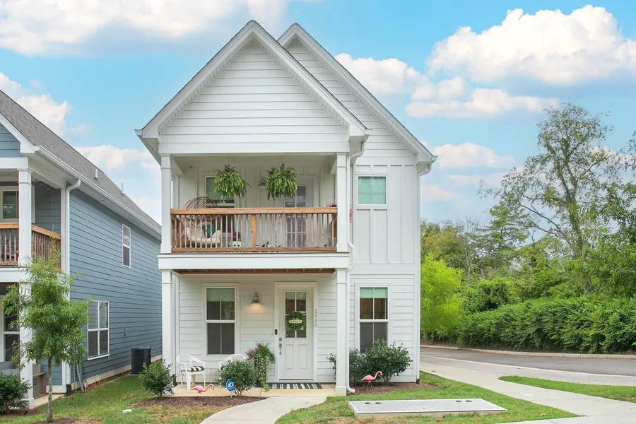 Step inside this affordable, quality built, like-new construction Charleston-style home conveniently located just outside of East Nashville, and minutes to downtown. This 2 bedroom/ 2.5 bathroom home welcomes you with a covered porch and balcony above, and has a nice floorplan with an open living/ kitchen concept with separate dining nook. Features include contemporary finishes and hardwood floors throughout, massive closets with other additional storage, entertainers kitchen with large island, quartz countertops and stainless steel appliances. Primary suite has vaulted ceilings, private balcony, huge walk-in closet and nice bath with double vanities. 2nd bedroom also has it's own full bath and huge closet. Separate laundry closet upstairs. Small yard and nice walkable little neighborhood. Check out this great home and price!