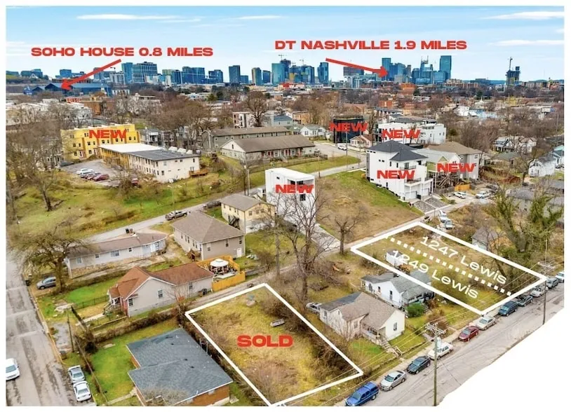 Nashville's hottest new area Chestnut Hill still undergoing massive change with tons of opportunity. 1247 Lewis is a .11 acre vacant lot that was zoned IWD but has now been rezoned to MUL-A-NS with Council member support from Terry Vo. Under this new zoning it qualifies for significantly higher density and residential development. New construction all around selling in the $500K - $700K price range. Seller does not have survey but rezone process is complete. All utilities available at the street. Purchase with neighboring lot 1249 Lewis for 9196sf (0.21ac) Less than 2 miles to Downtown and even closer to Wedgewood-Houston's SOHO house, Flamingo, (upcoming) Pastis, Bastion, Present Tense, Never Never Bar and so much more.