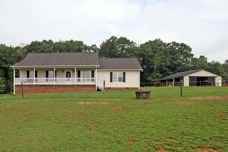 Not only is this farm ready for you and your horses, it is located in the highly desirable Mocksville and Davie County area. The charming 4 bedroom and 3.5 bathroom home has a split floor plan along with a full walk-out basement with a workshop and half bath. Finish this space for additional living space. The master suite is very generous with room for a sitting area. It also has a walk-in closet and bath with whirlpool tub ideal for soaking away the days riding aches and pains. The home also offers a large guest suite with private bath perfect for long term guests or that member of the family that needs their own space and privacy. Enjoy a cup of coffee on the back deck with French doors that access the kitchen. The open kitchen has oak cabinetry and dining area with plenty of room for a center island. The laundry room is located just off the kitchen giving you room for additional storage if needed. The cathedral ceilings & gas fireplace in the living room give the home a warm and open feeling. Watch the farm activity or the horses from either the rocking chair front porch or the back deck.