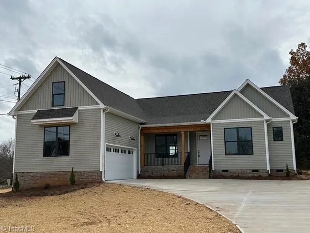 Large corner new construction retreat in Advance combines style, space, and functionality with a popular split-bedroom plan. Featuring 3 bedrooms, 2 baths, and a spacious bonus room over the garage, this home is perfect for all lifestyles. The charming covered front porch with cedar posts welcomes you inside. The open-concept kitchen and great room boast vaulted ceilings, a large island, and a cozy fireplace framed by elegant built-ins. A dedicated dining room offers space for formal gatherings. The laundry room impresses with stylish tile flooring. The luxurious primary suite includes a spacious bedroom, oversized shower, and custom walk-in closet with natural light from a transom window. Two additional main-level bedrooms share a beautifully designed bathroom. Step outside to the covered back porch, ideal for outdoor relaxation. With its thoughtful layout, large bonus room, and prime corner lot, this house is ready to call home !!