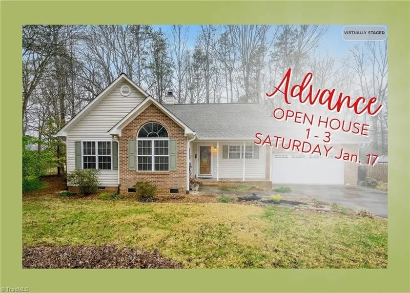 Enjoy easy ONE-LEVEL living in one of Advance’s most desirable locations. This beautifully maintained 3-bdrm 2-bath home sits on a level lot and is truly MOVE-In READY. The updated kitchen features NEW cabinetry and countertops, making everyday living and entertaining effortless. Both bathrooms have been refreshed with updated cabinet fronts for a clean, modern feel. Other improvements include NEW ROOF and gutter guards, NEW lighting, NEW stove, NEW garage door and opener! Step outside and IMAGINE SPRING IN FULL BLOOM! This home is a gardener’s delight. The fenced yard showcases the results of the current owner’s green thumb, complete with two peaceful water features that attract birds and wildlife, along with a variety of fruit trees, creating a serene outdoor retreat. Ideally located near world-class healthcare, in the Shady Grove school district, easy access to I-40 and the beauty of Tanglewood Park, come enjoy comfort, convenience, and a lifestyle you’ll love! Showings begin 1/15.
