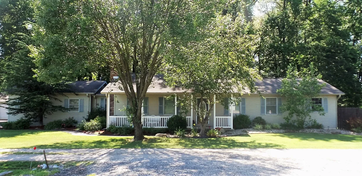 Beautifully landscaped setting with mature trees for this one level home. Features include a large kitchen, dining room, and living room with fireplace, large master bedroom includes cozy sitting area with cathedral ceiling and windows, two additional bedrooms, two baths, 2-car attached garage, and two additional garages; one with man cave or workshop area and upstairs storage. Convenience of edge of town with country feel.