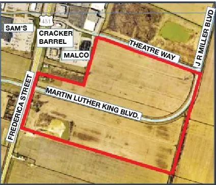 This acreage has frontage on Frederica Street, J.R. Miller Boulevard, Martin Luther King Loop and Theater Way