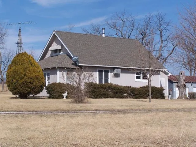 Well maintained, 2 bdrm. 1 bath home with an enclosed front porch that could be converted to more living area if needed. The house has had some updating with paint, floor covering, fixtures and appliances stay. Included is a detached two car garage with open end for a lawnmower also has another storage shed and large yard. Located on a gravel road just off blacktop and sits on 3 acres m/l.