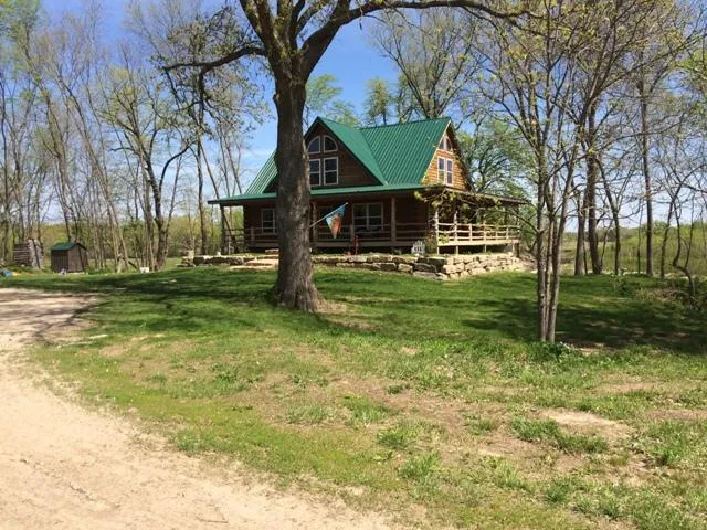 A Newer Custom built home nestled in the trees and sits at the end of a long private winding lane. This home features 2 bedrooms, 2.5 bath. The main floor features a spacious master bedroom and master bath with Jacuzzi tub & walk in shower, a half bath, an open kitchen with custom cabinets/counter tops and living room with vaulted ceiling. Second story features a bedroom and large sitting room. Finished walkout basement w/built in wet bar and zoned in floor heat, second family room, full bath, safe room, and storage rm. Enjoy the peace and quiet on the wraparound porch that overlooks the countryside views. You can spend time in the 34x93 green house for your summer enjoyment. If you are looking for total privacy and serenity, this house make you feel like you are in a secluded cabin in the middle of nowhere. Home could be purchased with more acres. Call listing agent for more details.