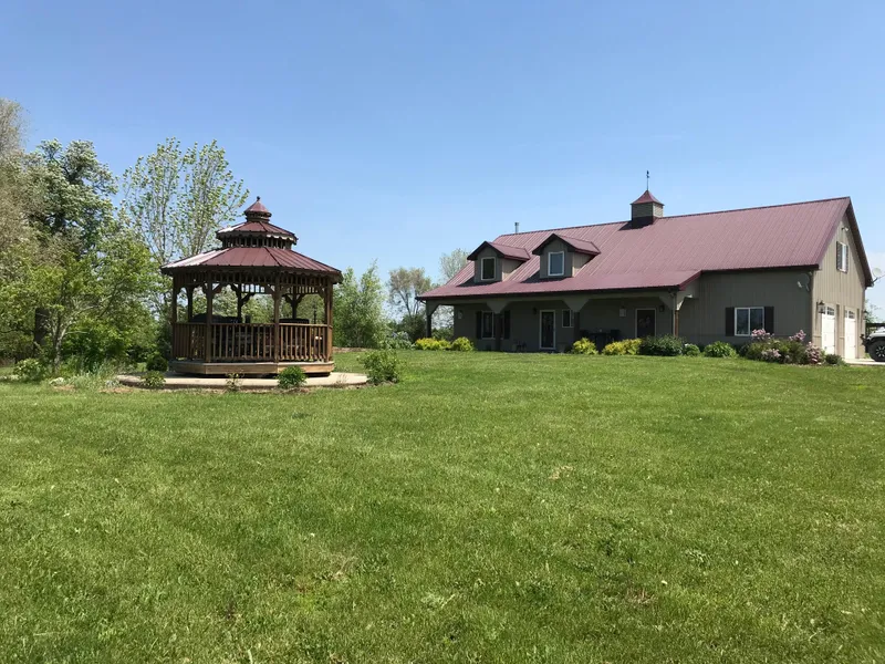 Beautiful custom country home on 120 +/- acres. This 2 story home features 2166 sq. ft. w/open floor plan on main floor, vaulted ceilings, custom cabinets, lg. windows for lots of natural light, and family room w/wood burning stove. Also has main floor master and laundry. Second level has sitting rm/library, 2 BR, full bath, and lg. Great room for your family's entertainment. Enjoy the lg. yard with gazebo/patio area for your relaxation, and stocked pond for fishing. Home is also insulated with ICF blocks for high efficiency. Land features 63.8+/- acres of tillable crop ground with majority of Grundy and Lamoni soils w/tile and terracing. Cash leased for 2019 thru 3/2022. There is 2.2 acres of CRP filter strips and balance of the acreage in hay ground creek and 2 ponds. Located only 1 mile off blacktop.