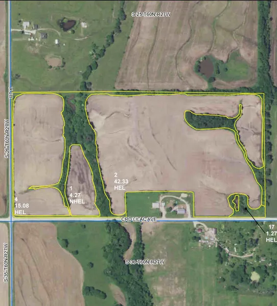 Good row crop acreage with 63 tillable acres according to FSA. Some of the tillable ground is creek bottom for outstanding productivity. Blacktop K frontage and Lilac gravel road frontage offers several building sites. It also has a small stream with trees on each side for wildlife habitat. Located within a few miles of Jamesport.