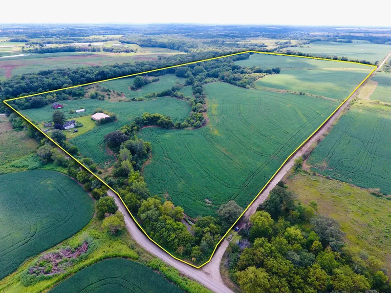 Nice tillable farm with 60 crop acres cash rented for $220/ac, with 3.3% ROI. Property has great hunting with an older home needing some TLC, 72x54 metal building, plus a few other outbuildings. Hunting lease $1,000/yr. House rents for $4,000/yr. One pond, timbered draws in a secluded location.