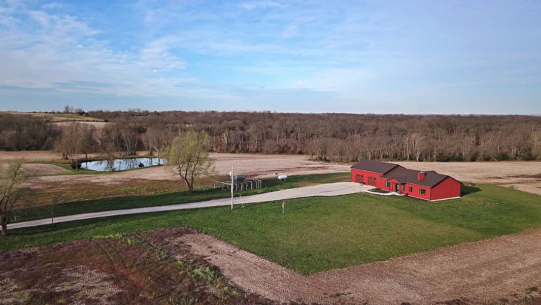 Presenting a beautiful custom home on a well-rounded combination farm. This 3 bedroom, 2 bathroom home presents an open floor plan loaded with features like first floor living, wood fireplace, 3 season room and plenty of windows for abundant natural light. As you walk through the front door, you enter an open living room that flows into the kitchen and dining space. You'll love the spacious custom kitchen for its granite countertops complimented by custom cabinets, a farmhouse sink, and stainless steel appliances. Just off the living room, you'll find the primary suite with a walk-in closet and an adjoining bathroom featuring dual vanities and Jack and Jill shower. Across the other side of the living room is a full guest bathroom and 2 other bedrooms. Rounding out the finished living space is a mudroom/laundry room combo and a gorgeous 3 season room with westward views. The 3 season room overlooks crop fields that back up to timber with deer, turkeys, and other wildlife right out back! An attached oversized 2-car garage is well insulated, boasting high ceilings, lift master door openers, a wood stove, extra laundry hook-ups, and a walk-out door. One of the best features of the garage space is a concrete storm room that also functions as a safe. The home is situated on a beautiful recreational and income-producing farm where the hunting experience has been carefully designed and perfected over many years. An extensive list of hunting improvements includes 3 custom-built elevated blinds, food plot, mineral sites, water holes, and camera posts with hoods. Best of all, this was meticulously laid out to make use of cover and terrain to allow stealth access to the hunting blinds. Access is the key to long-term deer hunting success, and this property proves that with its long history of big bucks and plenty of turkeys. By the way, this farm is also known for abundant morel mushrooms, and there's even a stocked pond. Last but not least, this is an income-producing property with 39+- tillable acres that are cash rented to a local farmer. Please call today for your private tour of this well-designed and beautifully maintained property