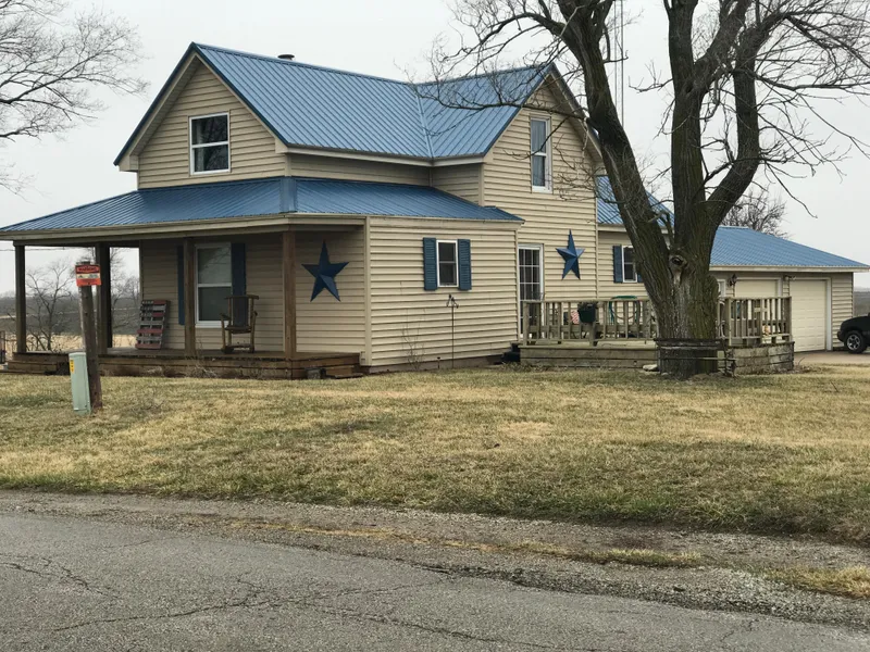 Own a place in the country! This 1.5 story home with covered porch is located on 3.4 ac m/l and is a perfect place to call home. It features 3 bedrooms and 2 bathrooms with eat-in kitchen and family room/w fireplace, laundry room, and mudroom. Enjoy summertime barbecues, or sunsets off the spacious deck. Also features updated windows, vinyl siding and metal roofing. This acreage has a nice level yard with lots of mature shade trees and two small storage outbuildings and room for the 4-H projects. Great location with black top frontage.