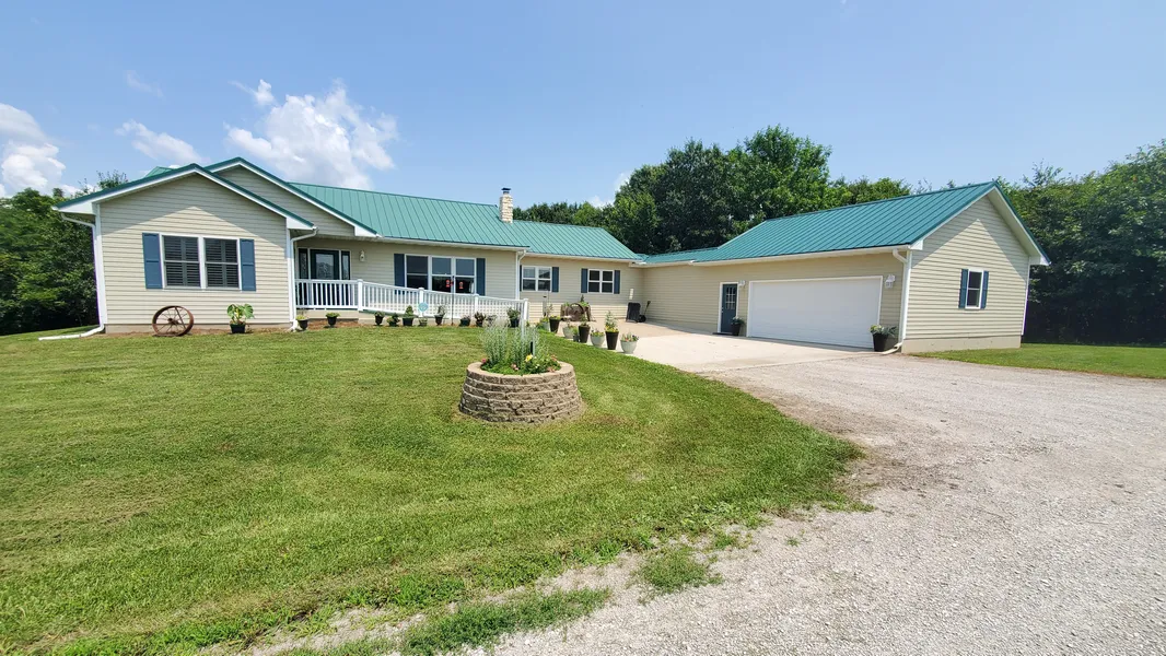 Look no further for your opportunity to own a country acreage and a beautiful home just 4 miles from Adam Ondi Ahman on a secluded road with hunting opportunity! This home is less that 20 years old and runs very efficiently! The entire main floor is handicap accessible for retirement status. Plantation shutters, 2x6 construction, 9 foot ceilings, metal roof, concrete siding, built-in cabinetry, and a large living room are just a few of the best features. Open kitchen/dining room with wood-burning stove and plenty of trees on the property to burn! There are over 20 acres of timber, a pond, and rentable row-crop land with a manageable yard. Room in the basement to add non-conventional bedrooms or living space. Plenty of room to grow some animals or homestead! Room to build workspace or outbuildings and 4 parking spaces outside garage in driveway. If you're looking for very few neighbors and a whole lot of privacy in a country setting with an excellent view, then this is the place for you!