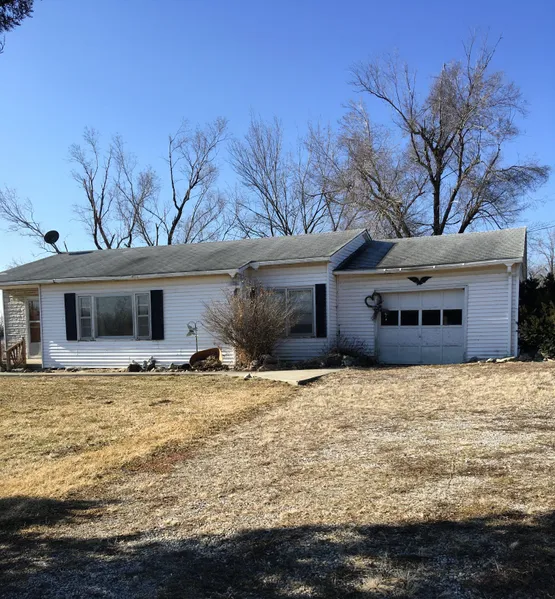Affordable home with three bedrooms, 1 bath sitting on large lot in Jameson, MO. This 1152 sq. ft. ranch house includes vinyl siding, full basement, attached garage, dining area, eat-in kitchen with built-in cabinets, and a large rear wooden deck. Kitchen and bath have tiled floor and all other room are wood floors. This .636 acre lot has a garden space, shade trees, and plenty of extra space for expansion or addition building. Within walking distance to school and community park.