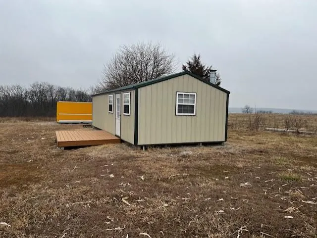 Cabin has a functional bathroom and remaining area is outfitted with kitchen and sleeping area...wood stove and electricity. Very nice hilltop location overlooking Grand River valley. 35 acres of timber and balance in warm season grass mix. Apple trees and cedar tree wind break has been planted. This is a hunters dream! Don't let it get away!
