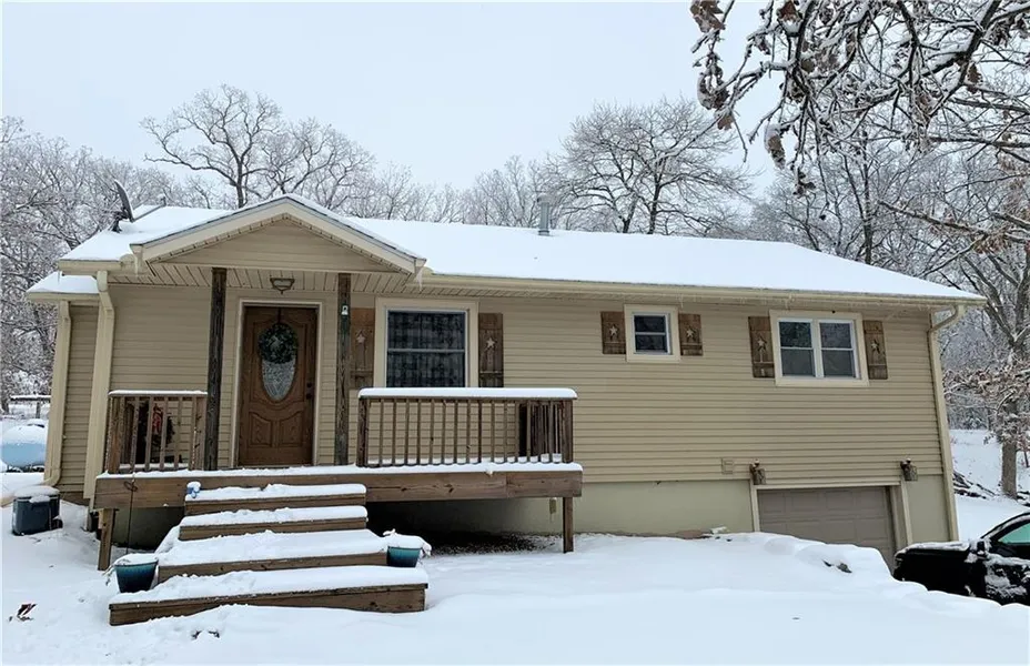Experience the peacefulness of country living with a bonus lake view! This nice ranch home sits on 2 large lots at Lake Viking with nearly 1 acre of mature trees, a big driveway and plenty of room to enjoy being outside around a fire pit. The upper level includes an open living/dining/kitchen area with a new back deck, 2 bedrooms & 2 full bathrooms. The master bedroom's private bath has been updated with a walk-in shower and double sinks. This efficient kitchen has lots of cabinet space, a pantry closet and includes appliances. The lower level has 2 non-conforming rooms great for additional bedrooms or an office, the laundry area and a 1-car garage. Recent updates include newer HVAC, remodeled master bath, drainage tile around back of home and landscape rock walls along drive.