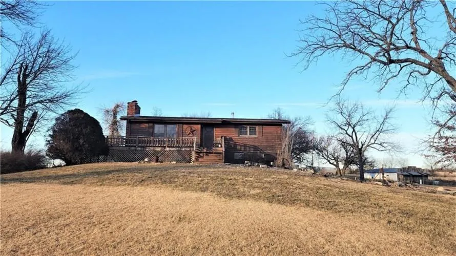 Country Home with Plenty of Outdoor Space! This beautiful 22-acre property sits on a hilltop with mature trees, unique rustic landscaping, and a large multi-level deck to sit and enjoy the view. This property is perfect for animal lovers with its large barn, fenced pastures and ponds. The house built in 1981 is reminiscent of a log-style home with pine siding and rustic rock fireplace, 2 bedrooms PLUS a non-conforming bedroom that could be used as a guest space or office. Outbuildings include a large barn with a 40' addition big enough to store an RV; a second outbuilding with animal pens and a cute potting shed for more storage.