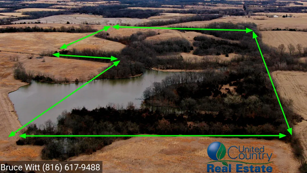 60 beaufirul acres with everything and no traffic! 10 acre lake, 25 acres of timber & 25 acres open land. 1 hour to Kansas City. Big deer, big bass, big turkeys & big catfish! Take your kids & grandkids to this 60 Acre paradise. Nothing like it...8 minutes off I-35 exchange, lots of habitat & wildlife. 10 acre lake provides great fishing and adequate water supply for wildlife. Several great food plot locations and lake side camping.