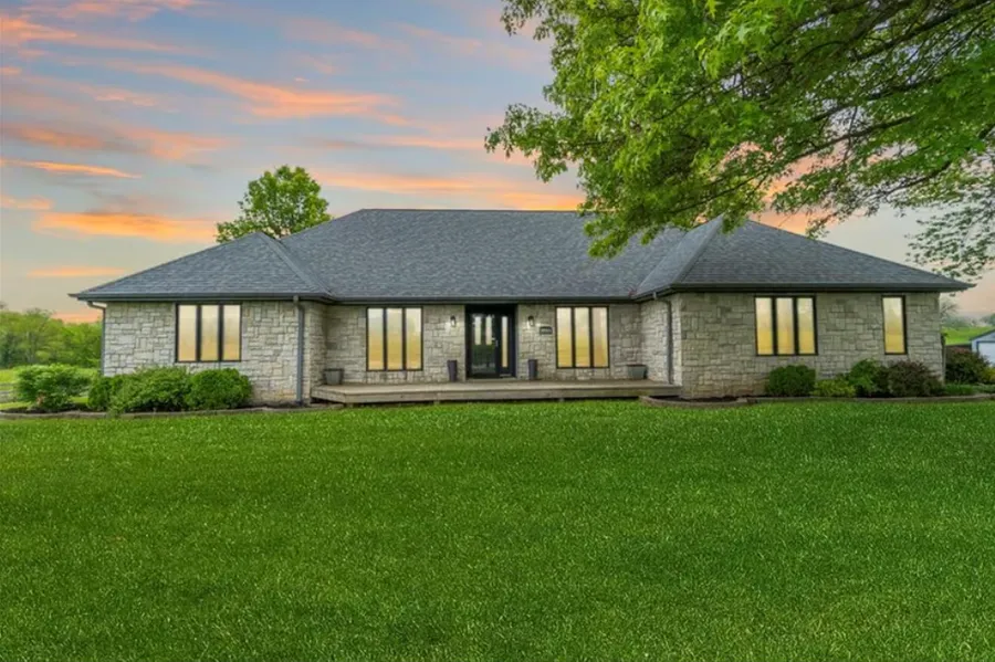 Located on a paved road, this charming property is less than 2 miles from Gallatin, 14 minutes from Jameson and only a few minutes away from the stunning Lake Viking. The home boasts 2,920 sq. ft. of living space on the main floor, along with a spacious open basement offering ample storage and a finished tap room of approx. 372 sq. ft. Privacy and sophistication are ensured by the new cedar fence and gated driveways. Enjoy recreational activities with a stocked pond brimming with fish and a swim dock, or take a jump in the above ground pool! Outdoor entertainment is a breeze with spacious decks, ideal for hosting gatherings, or relaxing in the shaded yard or by the cement patio with firepit. The home features 5 bedrooms plus a 6th non-conforming bedroom, 2 full bathrooms, and 2 half bathrooms. The expansive eat-in kitchen and dining room are perfect for family gatherings. Updates include new flooring, a stylish stone accent wall, a renovated kitchen with a new backsplash, and updated fixtures and lighting throughout. A 2-car garage provides additional convenience. Adjacent to the main house, a private guest house with a half bath offers extra accommodation options. For those seeking additional space or a workshop, a 30 x 60 building is equipped with concrete floors, heating and cooling, and updated insulation. It's fully finished and includes a woodshop ready for your creative projects and hobbies. This property truly offers everything you could desire!