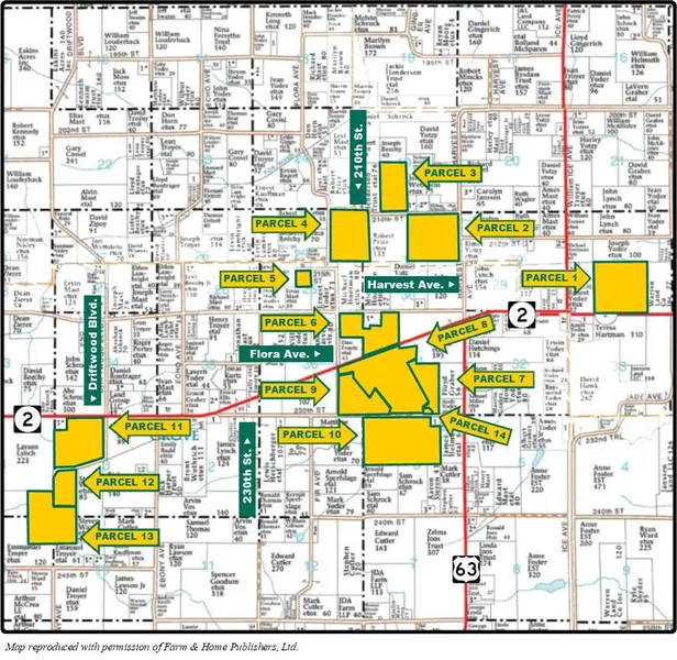 Farms have open leases for 2019 crop year and are a combination of tillable, pasture and CRP acres. Additionally, there is one acreage site with a house and outbuildings.