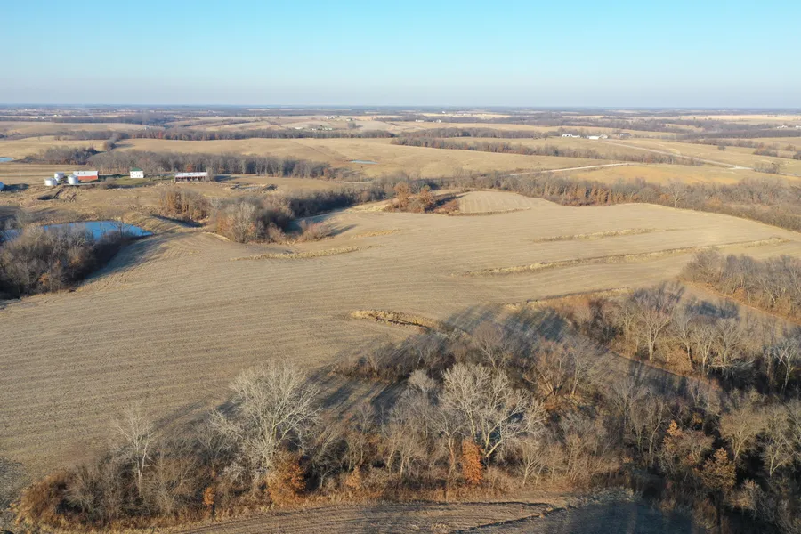 98 acres M/L northeast of Bloomfield combination farm with approx 40 acres tillable. Also offering grain storage, pond, 45x60, 44x90 pole barns, (2) 30x80 hoop barns. 1632 sq ft two story home in need of repairs being sold in AS IS condition.