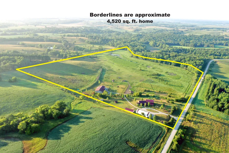4,520 sq. ft. home with a 2,712 sq. ft. finished outbuilding. This remarkable residence is situated on 40 acres and is accompanied by a fully-finished outbuilding that spans 2,712 sq. ft. Boasting 5 bedrooms and 2 1/2 baths, this open-concept dwelling is the perfect haven for families. The kitchen is expansive, showcasing a live-edge slab countertop, a walk-in pantry, and a sizable island. The addition of an office, mudroom, and laundry room only adds to the home's practicality. Revel in the outdoors with two back decks and a charming front porch. Additionally, the property provides a 32x70 hoop building, a chicken coop, and an in-floor heating-equipped 2,712 sq ft dog kennel for pet enthusiasts. The metal pipe fencing ensures the safety of your cattle and horses, while the black vinyl chain link fence provides ample space for your dogs to play. This property is the ideal sanctuary, catering to both your family's and furry friends' needs.
