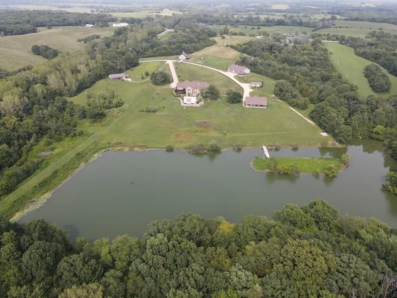 Stop and stare at this gem. Big time secluded recreational property with every custom detail to make this one of a kind. Over 4000 sq ft of custombuilt home featuring 4 bdrms 4.5 baths. 3 car attached garage. All quarter sawn oak cabinets and trim, 2 wood burning fireplaces, Oversized master bedroom with walkin shower and soaking tub. It's easy to settle in outback overlooking the 7 acre stocked lake while sitting the salt water swimming pool. On top of all this next door is the2 bedroom 1 bath guest house with all cedar finishes and nice sitting area overlooking the lake. 48x72 shop area fully insulated with tongue and groove cedar siding.28x34 livestock building. 24x34, 28x36 and 38x50 storage buildings. All this is sitting on 109 acres with organic hayfields and beautiful timber. There's nothing like itwith the extravagant qualities this one of a kind property has to offer!
