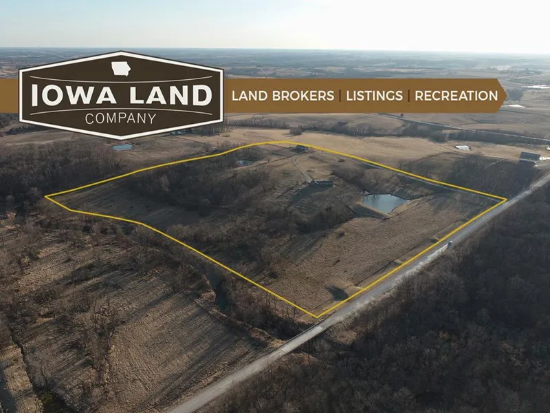 If you have dreamed about living on an acreage close to town and on a hilltop overlooking your pond, then you should look at this one! Theses 32 acres are located just 8 miles south of Bloomfield, Iowa. This 3 Bedroom 2 bath house was built in 2015 and has 1620 Sq Ft of living. With an open kitchen concept and a rustic theme, this is a perfect place for a county living acreage. The master bedroom has plenty of room including a walk-in closet and full bathroom. The guys will have no problem hanging out in the full basement with a walkout onto the stamped concrete patio that overlooks the pond. The house has central air/heat. There is a 3048 steel building built in 2015 and is perfect for a few horses or the hobby farmer. The fences and gates are in good condition and there is a second pond inside the fenced in area. This is a beautiful location and just a few hundred yards from hard surface road.