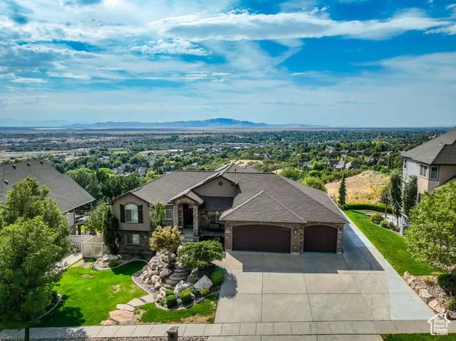 Gorgeous, Custom-Built Rambler on .74 Acres located high on Farmington's East Bench. Unobstructed and Breathtaking Panoramic Views of the whole valley! Heated Pool, Large Covered Patios, and a Pergola in the Backyard! Spacious Great Room. Kitchen has Granite Counters, Stainless Appliances, Farm Sink, and a Large Pantry. Main Level Laundry and a Laundry Room in the Basement for all the towels after swimming! Huge 4 Car Garage plus RV Pad. TONS of Storage inside and out! Views from every level. 2nd Kitchen in Walkout Basement. Solar. Tankless Water Heater. Mature Fruit Trees. Room to put in a pickleball court or even more large flat grass areas in the backyard! An Absolute MUST SEE!