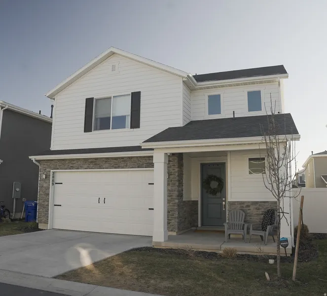 Welcome to this beautifully maintained 3-bedroom, 2.5-bath single-family home in the desirable Stillwater subdivision of Syracuse. This newer home has several upgrades with a modern and move-in-ready feel. The kitchen features an upgraded island with quartz countertops, a pantry, and flows seamlessly into the living room, which includes a built-in TV and fireplace area-perfect for relaxing or entertaining. Well-sized bedrooms make this home ideal for first-time buyers or small families. Located in a quiet neighborhood, the HOA includes access to a pool, gym, and bookable event space. Just minutes from Jensen Nature Park and great shopping and dining options, this home offers comfort, convenience, and community. (Square footage is from county records)