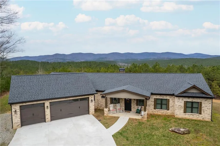 Escape to the mountains! This one has it all with plenty of room to grow with over 4.8 acres of pristine North Ga land. True stepless ranch with handicap accessibility throughout the home including all bathrooms. This completely brick ranch boasts a huge 3 car garage, open concept floor plan, granite counter tops, exposed beams, farm house accents, plantation shutters, custom dog wash station, huge kitchen island, double-sided fireplace and a screened in back patio great for entertaining and enjoying coffee while enjoying serenity at its finest. 3 bedrooms and 2.5 baths are sprawled out on this ranch. Tinted windows are also through out this home to set in all the natural light and to admire one of Dawson's nicest views. This home was built in 2018 making the home like new and is wired for all generator power to be completely self sustainable. Come make this your primary residence or turn into a great Airbnb or vacation home. From the back you can see Amicalola falls and Cochran falls. This home is its own escape, but it is centered close to many attractions. A short drive to dozens of top-rated wineries, down-town Dahlonega, Big Canoe, Iron Mountain, and much more!