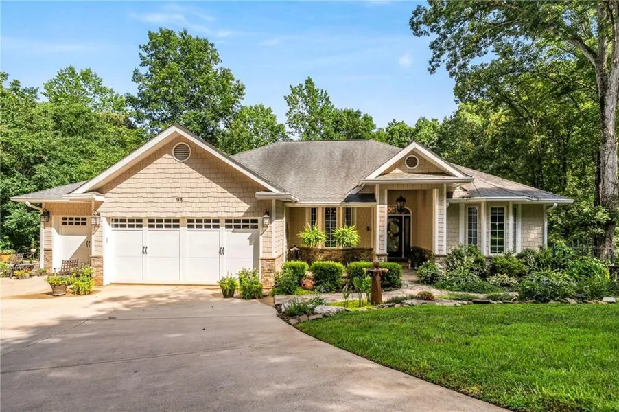 Craftsman ranch on 1.9 + acres in a private Lake Lanier neighborhood minutes from GA 400 with no HOA. Hardwood floors, 10'+ ceilings, double-sided wood-burning fireplace and transom-topped casement windows throughout the main level, with thoughtfully detailed and rarely available smooth corner walls. Primary Suite is a sanctuary unto itself with its wood paneled walk-in closet and a spa bathroom complete with an arched ceiling and lots of natural light. French doors open to a covered screen porch, perfect for chilly fall mornings, watching nature, or just listening to a rainy night in Georgia-additional guest bedroom with private bath on the main level, plus a half bath in the hall. Large living space on the terrace level with a kitchenette makes entertaining a breeze. 2 additional bedrooms, a large office/media flex space, a full bath, and walk-in storage finish out the sun-filled walk-...