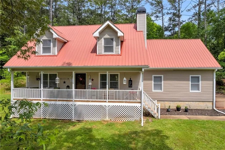 Welcome to this charming home with 1950 sq ft, perfectly situated on a spacious one-acre+ lot offering privacy and room to enjoy the outdoors. The covered front porch spans the entire front of the home, creating a warm and welcoming entrance and the perfect spot for relaxing with a morning coffee or evening breeze. Inside, the family room is cozy yet spacious with beautiful hardwood floors and a stone fireplace that adds warmth and charm. The kitchen offers ample cabinet space and includes a brand-new top-of-the-line refrigerator with smart features. The spacious primary bedroom suite is conveniently located on the main floor, tucked away for privacy, and features double closets and an attached bathroom. The laundry room is also on the main level for added ease. Upstairs, you’ll find two additional oversized bedrooms that share a full bath. One of the bedrooms is extra-large, making it ideal for a home office, craft room, gaming space, or guest suite—the possibilities are endless. You’ll also appreciate the additional finished storage space upstairs, complete with its own door—perfect for a small office, seasonal storage, or whatever meets your needs. Step out back to an expansive deck, ideal for grilling, entertaining, or simply enjoying the peaceful surroundings. Updates include a newer metal roof known for its longevity, and a newer HVAC system still under warranty—offering peace of mind for years to come. Located in the sought-after and well-established Country Crossings neighborhood, this home offers a peaceful environment paired with an unbeatable location. While this is not part of a HOA, an optional membership to the Recreation Association is available for access to the neighborhood amenities; however, any associated fees would be the sole responsibility of the buyer, should they choose to join. Enjoy the convenience of being just minutes from GA-400, making for an easy commute and close proximity to the North Georgia Premium Outlets, a variety of shopping, dining, and all the everyday essentials. A rare find that offers both flexibility and location—don’t miss out! Schedule your showing today.