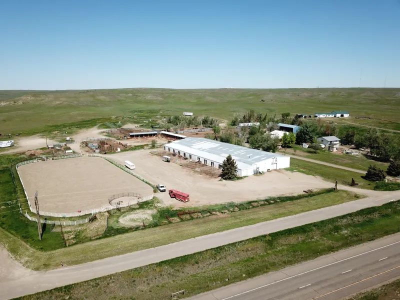 The indoor arena building is +/- 100 x 240, including seating, roping chute, bucking chutes as well as 16 covered stalls. There is also an outdoor arena along with 15 additional covered stalls, separate from the main arena. The property also has 2 homes, one with an attached 30x40 garage. There is also a 30x 72 3-sided pole barn shed. 2 wells supply water for the property.