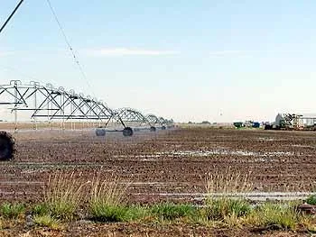 he farm is irrigated with a low-profile, towable, center pivot sprinkler system nozzled at approximately 450 gpm (according to the owner water is provided for the sprinkler from one irrigation well on the property and two irrigation wells from the adjacent rented land). There is a permit in place with the Water District to drill a new irrigation well.