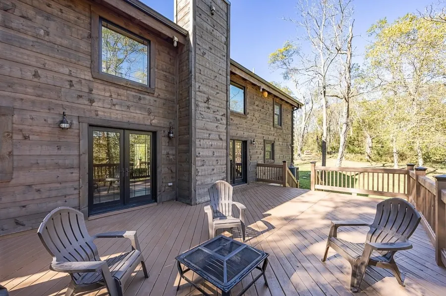 Welcome to 16468 West County Line Rd a stunning and secluded retreat on 10.5 rolling acres. This 2016-built hybrid log home features 3 bedrooms and 2 full baths, showcasing exceptional craftsmanship throughout. The spacious great room centers around a massive stone wood-burning fireplace and French doors that open to a large deck overlooking serene woods. The main-level master suite also offers private deck access. Enjoy a beautiful kitchen with a stone island, quality cabinetry, and durable vinyl plank flooring throughout the first floor. Two generous upstairs bedrooms provide extra space, while the walkout basement is ready to finish, with laundry, utilities, storage, and a rough-in half bath. Built with 2x6 exterior walls, spray foam insulation, and wood siding inside and out, this home blends rustic charm with modern efficiency. Perfect for recreation, the property includes trails, ...