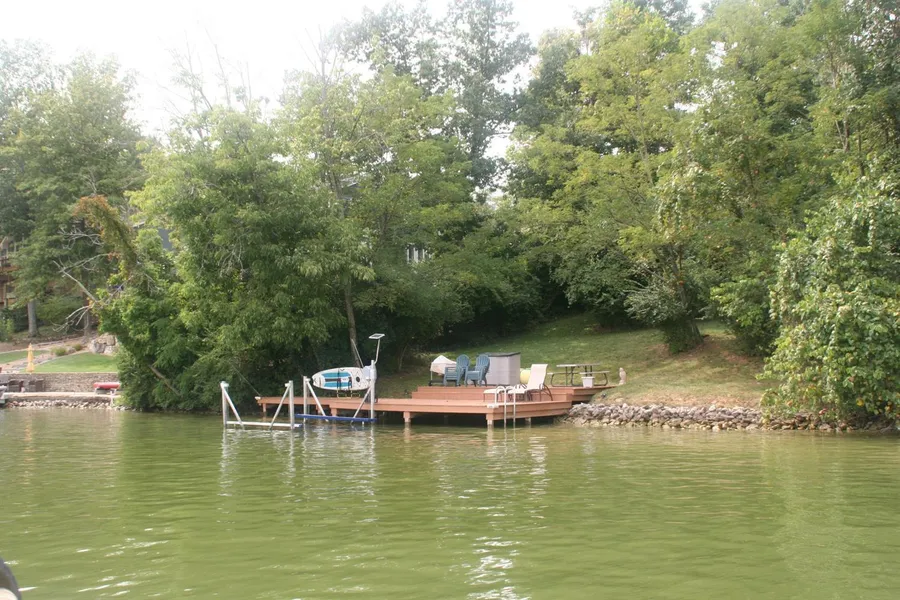 BUILD YOUR DREAM LAKEFRONT HOME HERE! A rare find! Very few main lake lakefront lots left! Enjoy a beautiful sunrise view over the lake from the decks or dock of your dream home! Fully protected shoreline (rip rap), 2 level dock w/picnic table & storage box and solar powered boat lift. Design & build instead of remodeling! House plans available with purchase! Call Kathy for more information.