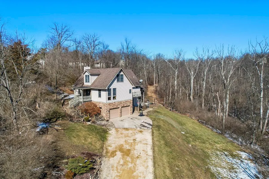 LOOKING FOR PRIVACY? THIS ONES FOR YOU!! Welcome home to this charming transitional surrounded by woods, only a short walk to the HVL beach! Set on 3 oversized lots w/wooded greenbelt in the rear, this is a perfect setting to enjoy privacy & nature! Main floor living includes a spacious Great Room, wonderful eat-in kitchen, Laundry, Master Suite & 1/2 bath! Upstairs find 3 generously sized BRs, a loft craft area & a nicely finished full bath. The partially finished lower level houses a multi-functional family room with a built-in bunk/play area to one side, another full bath, spacious storage and a built-in garage. The Family Room walks out to a vaulted two-story screen porch, then to a large deck beyond. A rustic playset & stone firepit accent the back yard. Another small but convenient deck off the back hall near the kitchen provides a great spot to grill. Stacked stone covers the fo...