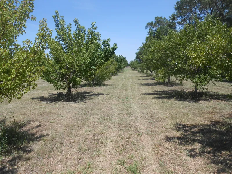 The orchard is flood irrigated with canal water from the Fort Sumner Irrigation District and an irrigation well drilled approximately 100 ft. deep which is equipped with a 5HP submersible electric motor and pump producing approximately 20GPM providing water for the drip irrigation system. Improvements on the property consist of a neat fruit stand used for road side retail sales of fruit and a unique red, barn-shaped home with two bedrooms (on...