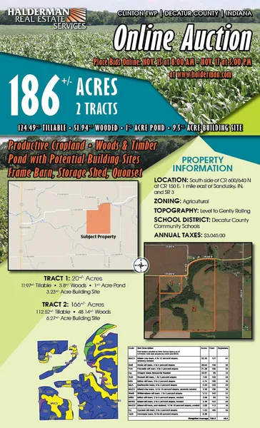 -Productive cropland, Pond with potential building sites, woods & timber.