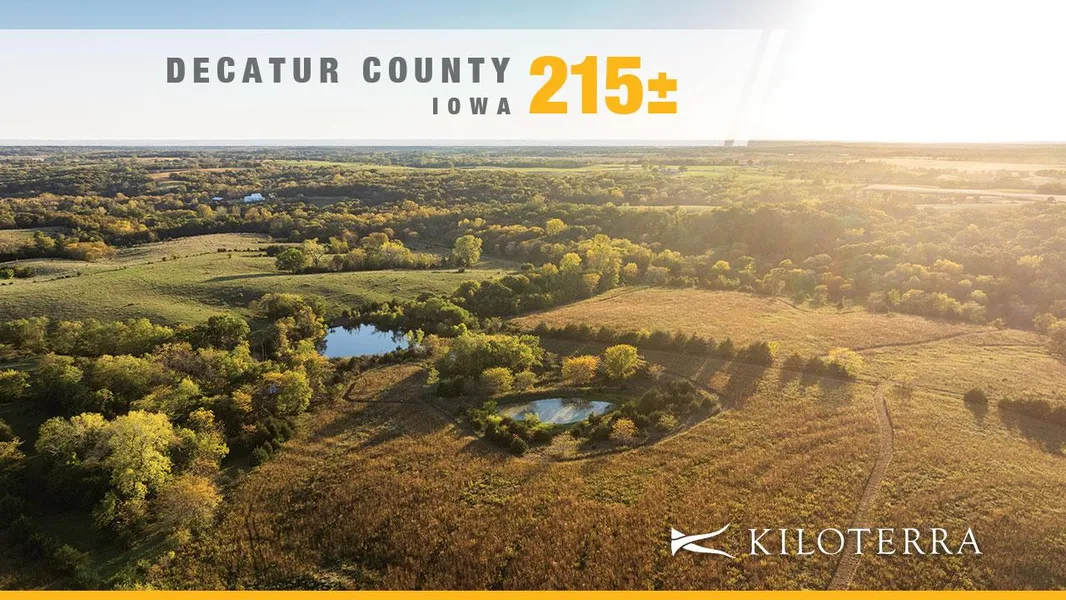 KILOTERRA is honored to offer this 215 M/L -acre Southern Iowa Hunting farm in Decatur County. Situated on a hard-surfaced road (Lineville Rd.) just SE of Leon, Iowa this farm offers high end recreation value and exceptional building sites overlooking the multiple ponds.