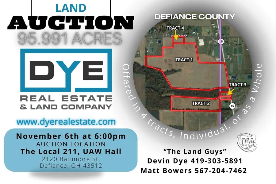Research Parcel InformationTract 1: Location: Located roughly 2 miles south of Defiance Ohio on State Route 15.