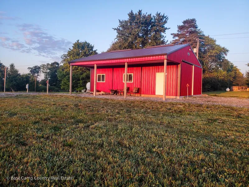 This stunning country lot is 4.5+/- acres that is currently being split away from its parent parcel. The morning views from this 2019 built 36 x 24 barns 10 overhang are incredible. This property has electricity, well, and septic already on site. There is a stone pad that has a septic and electric hookup for RV. If you are looking for country living and beautiful sunrises, look no further.