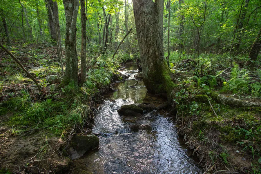 -Laurel Creek crosses the SW corner for 250 ft. Three significant stream branches bisect the property for a total of about 4,000 ft.